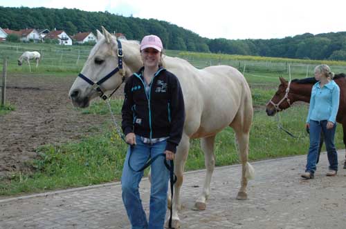 Quarter sind cool und vielseitig. Ich besitze noch einen Quarter-Wallach und einen Haflinger (Nesco), mit dem ich schon seit Jahren auf Turnieren erfolgreich bin. In den Besitz meiner Quarterstute Lady kam ich durch einen glücklichen Zufall. Sie lernt gern und schnell, ist super ruhig, immer zuverlässig und eine ausgesprochene Schmusebacke.