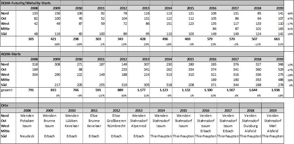 Alle anderen Regiofuturitys geben hingegen nach, insgesamt verbucht die DQHA 507 Futurity-/ Maturitystarts (-11%).