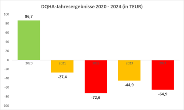 Diese Situation kommt nicht vollkommen überraschend, denn seit dem Jahr 2021 schreibt die DQHA rote Zahlen; der letzte Gewinn wurde zuletzt im Geschäftsjahr 2020 erwirtschaftet.