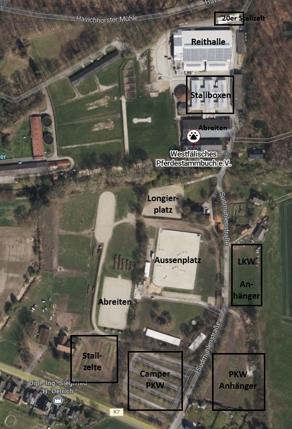 hier). Sie bietet zwei Reithallen (25 x 70m und 20 x 60),