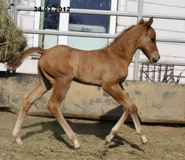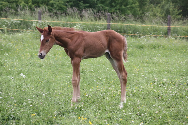 korrektes Hengstfohlen. Er zeigt super Bewegungen und ist